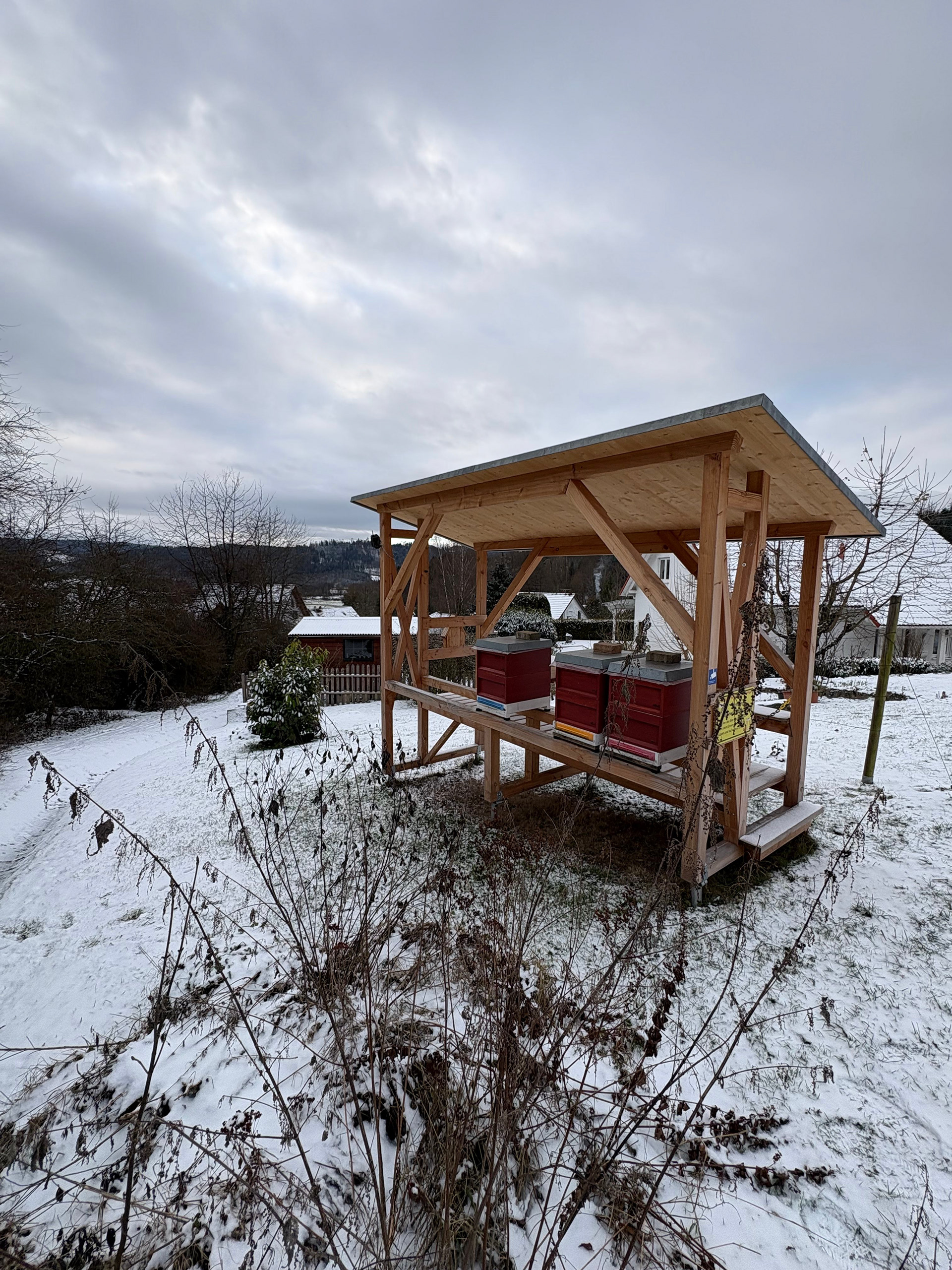Wir wohnen in mitten des schönen Schwäbisch-Fränkischen Waldes und sind umgeben von Natur. Ein wunderschöner Ort, wo andere Urlaub machen. Seit 2022 sind unsere direkten Nachbarn auch Bienen. Was mit einem Volk begann, entwickelte sich zu einer Leidenschaft mit umfassenden Veränderungen. Sowohl unser Garten, als auch die unmittelbare Umgebung wurden bienenfreundlich umgestaltet. Nun stehen in unserem Garten bereits vier Bienenvölker.